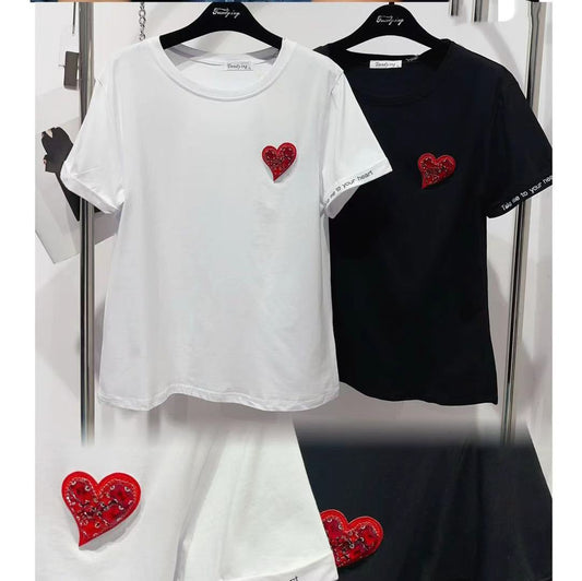 T-shirt con cuore rosso