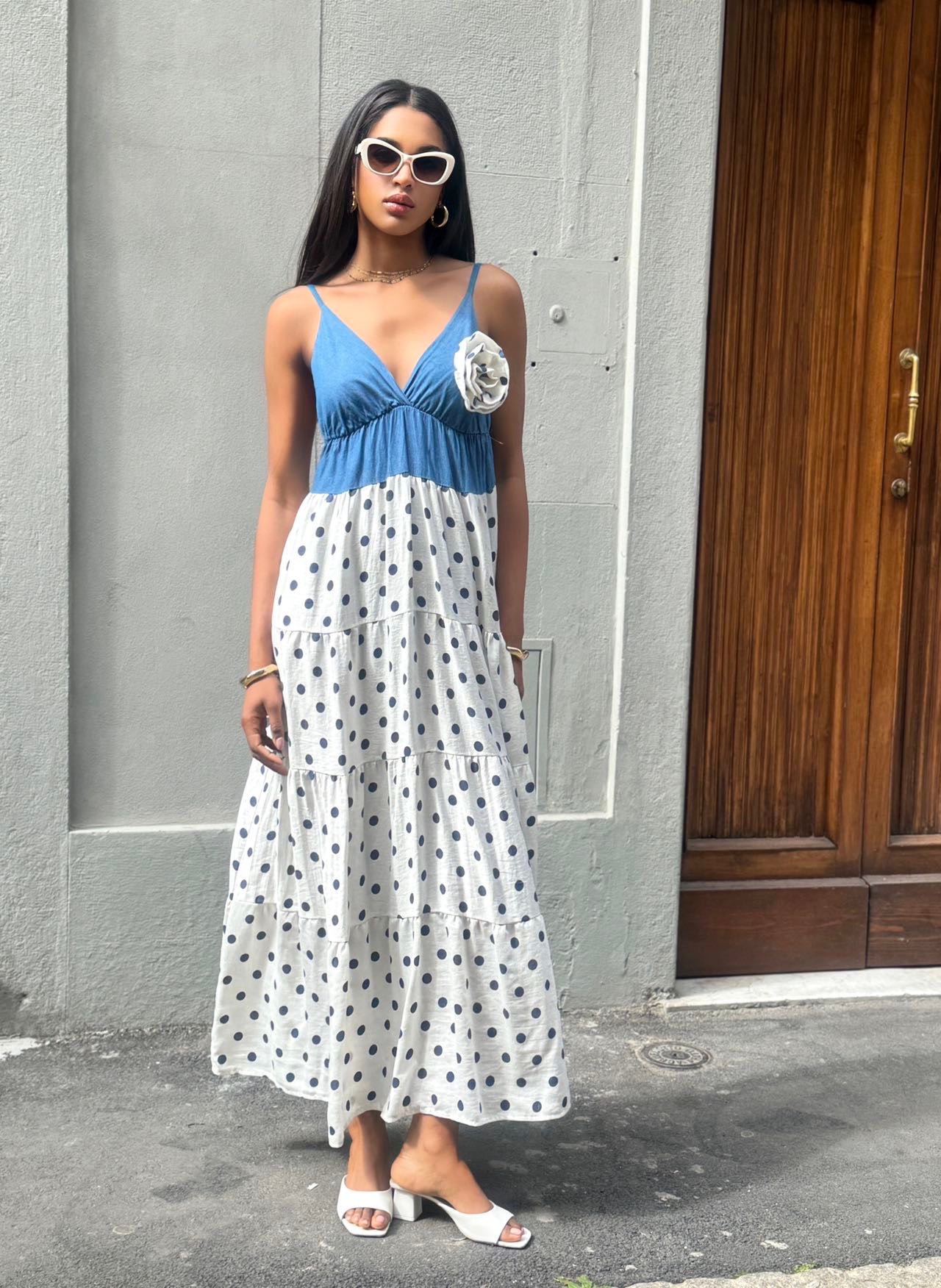 Presentiamo il nostro elegante abito senza maniche a pois fiore. Realizzato con tessuti di alta qualità, questo abito è perfetto per un'occasione speciale o una serata fuori. Il suo design leggero e senza maniche ti farà sentire confortevole e alla moda, mentre il motivo a pois fiore aggiungerà un tocco di femminilità al tuo look.