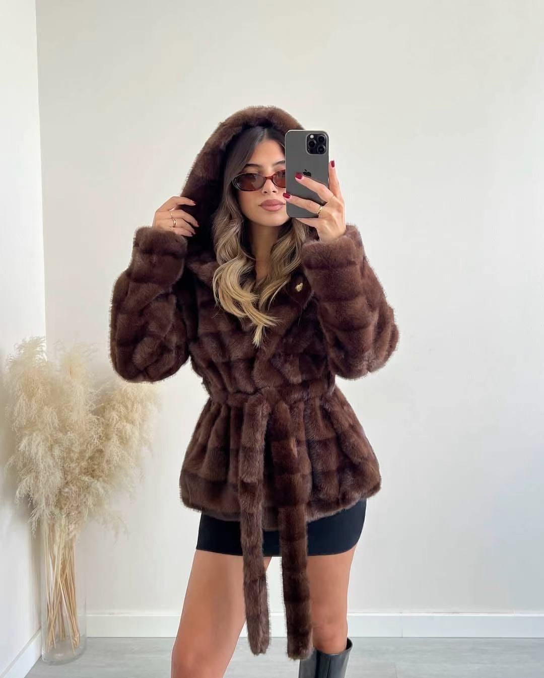 Questa pelliccia con cappuccio è perfetta per sentirti caldo e alla moda durante l'inverno. Realizzata con pelliccia sintetica di alta qualità, è morbida al tatto e ti farà risparmiare rispetto alle pellicce vere. Il cappuccio ti proteggerà dal vento e dalla neve, offrendo un look elegante e funzionale.