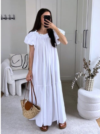 Esalta la tua eleganza con il vestito lungo largo per le feste. Il taglio largo offre una vestibilità comoda e rilassata, perfetta per ballare tutta la notte. I dettagli del vestito ti faranno risplendere in ogni occasione.